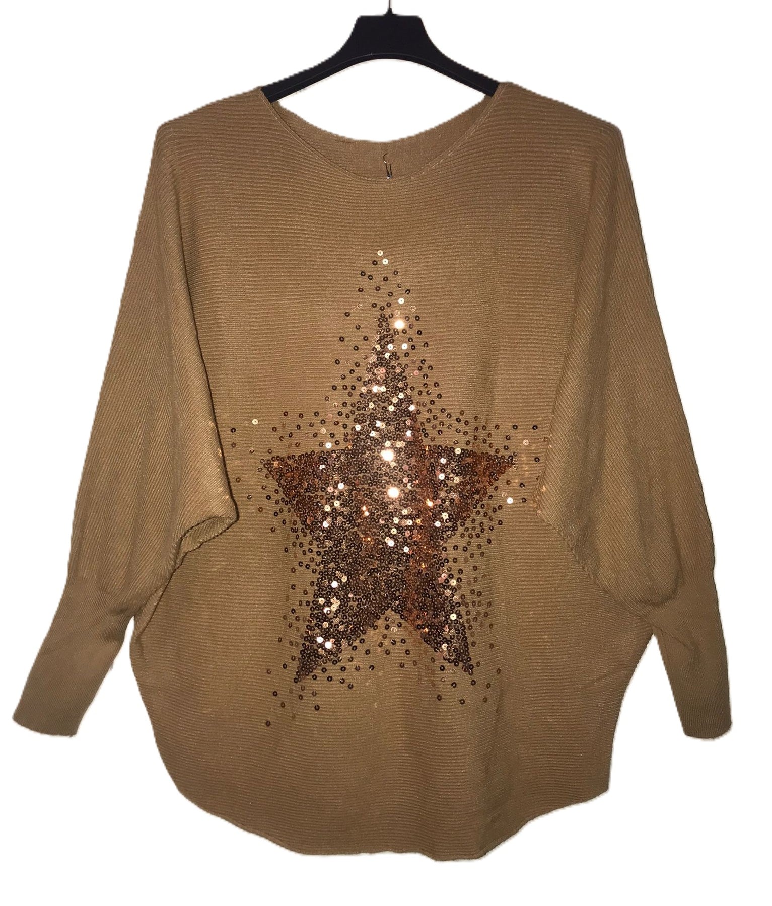 Ladies Italian Lagenlook Stylish Sequin Star Jumper with Batwing Sleeves