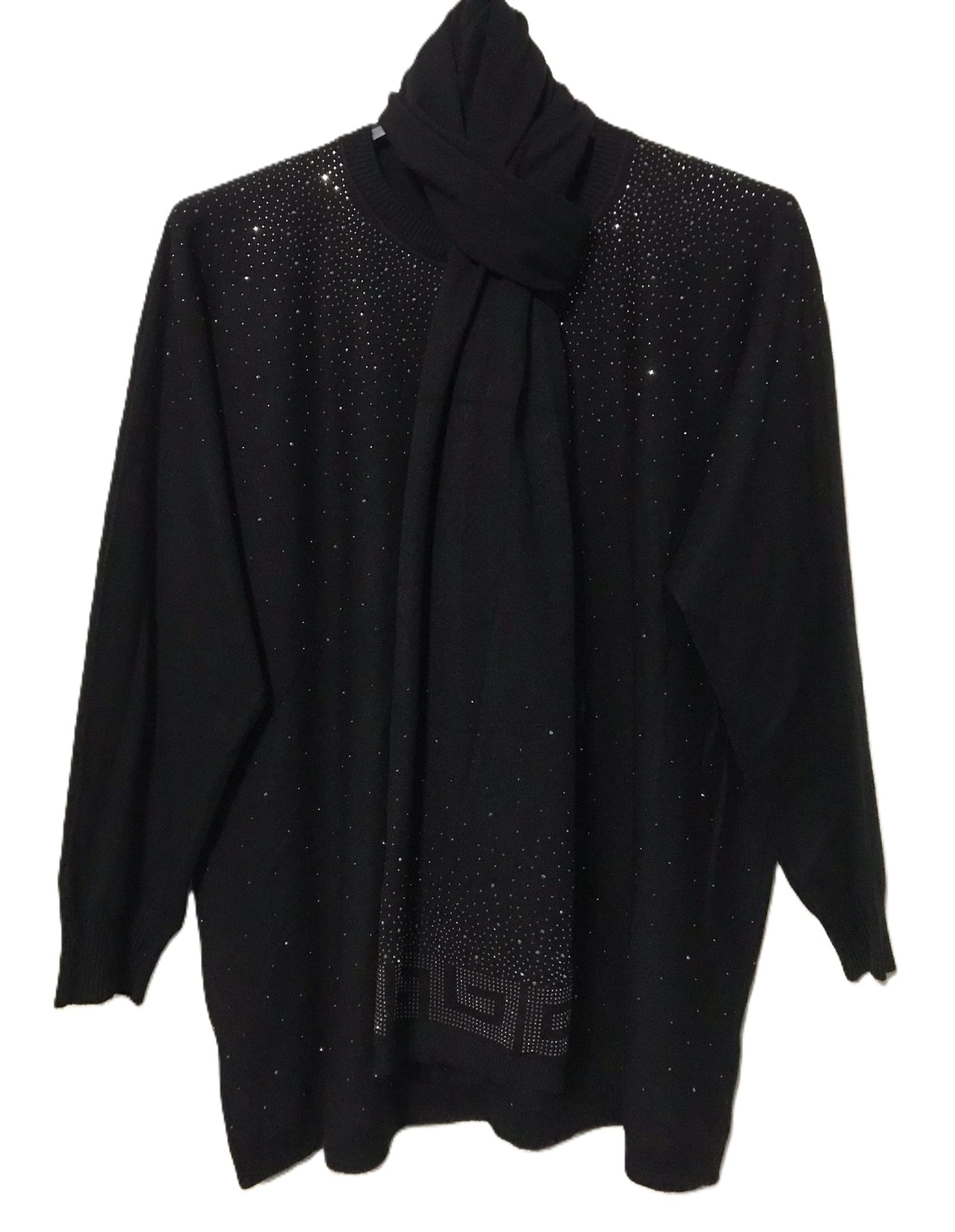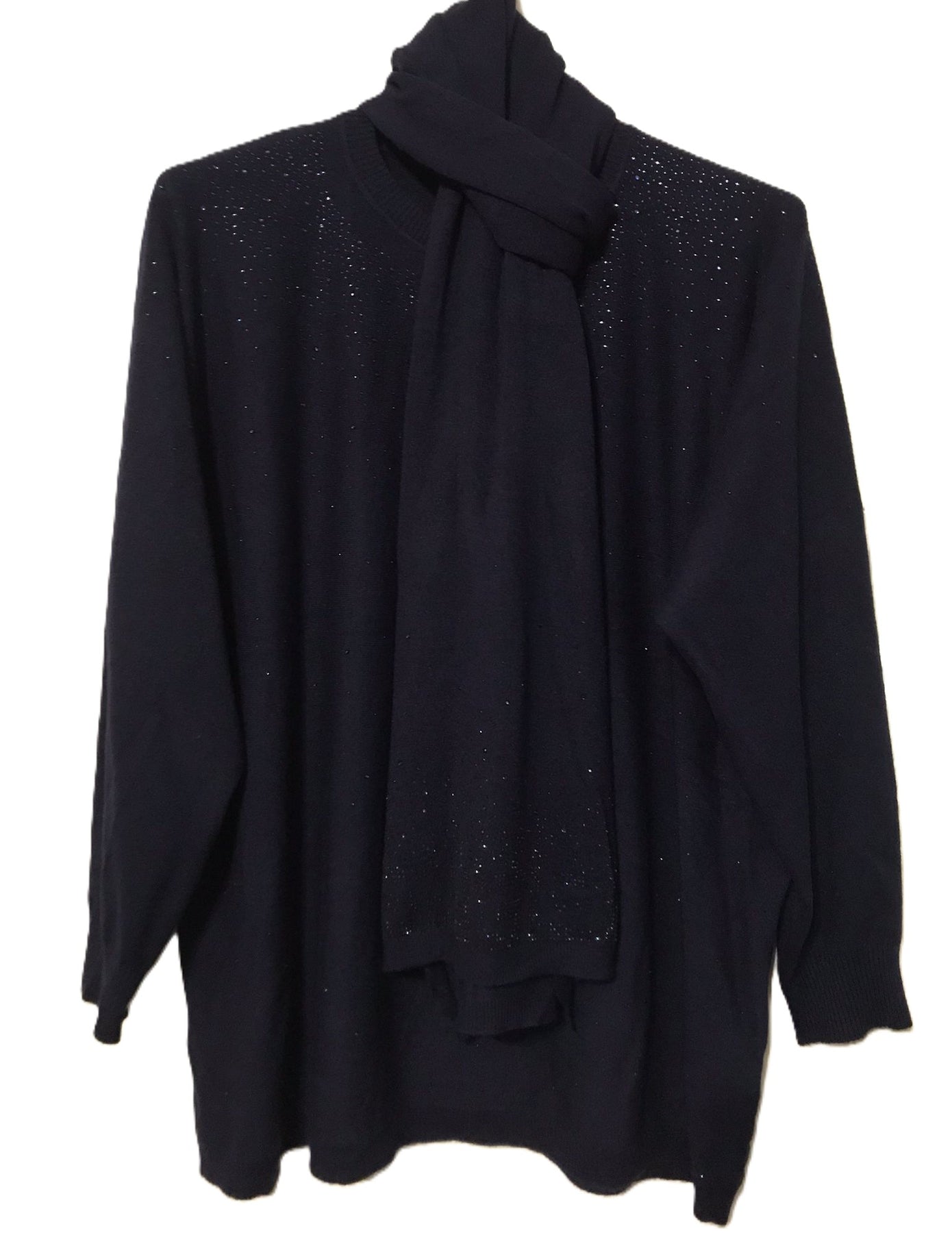 Ladies Italian Lagenlook Soft Knitted Sparkle Jumper and Matching Scarf Set