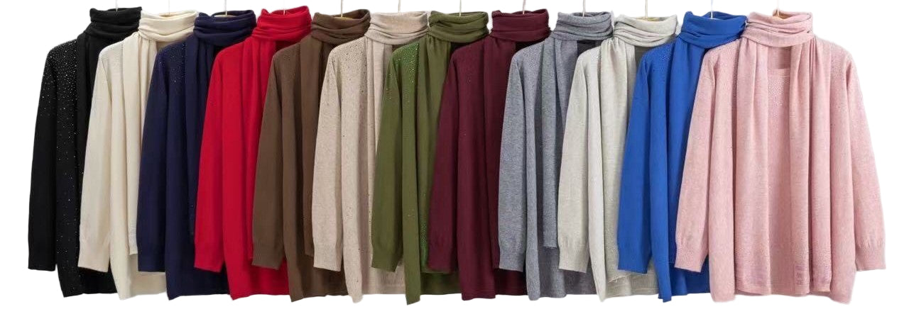 Elevate your everyday style with this stunning Italian Lagenlook set featuring a luxuriously soft knitted jumper paired with a matching sparkly scarf. Adorned with eye-catching diamante sparkles across the shoulders, scarf, and front, this two-piece ensemble delivers instant glamour to any outfit. Crafted from a sumptuous blend of viscose, polyamide, nylon, and modal, it's wonderfully warm and incredibly soft against the skin. The classic round neckline and long sleeves offer timeless appeal, while the one-size fit ensures effortless comfort. Perfect for adding a touch of shimmer to your winter wardrobe without compromising on cosiness.