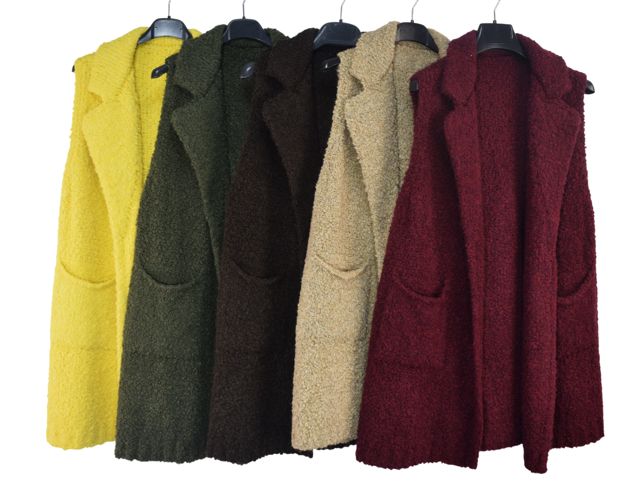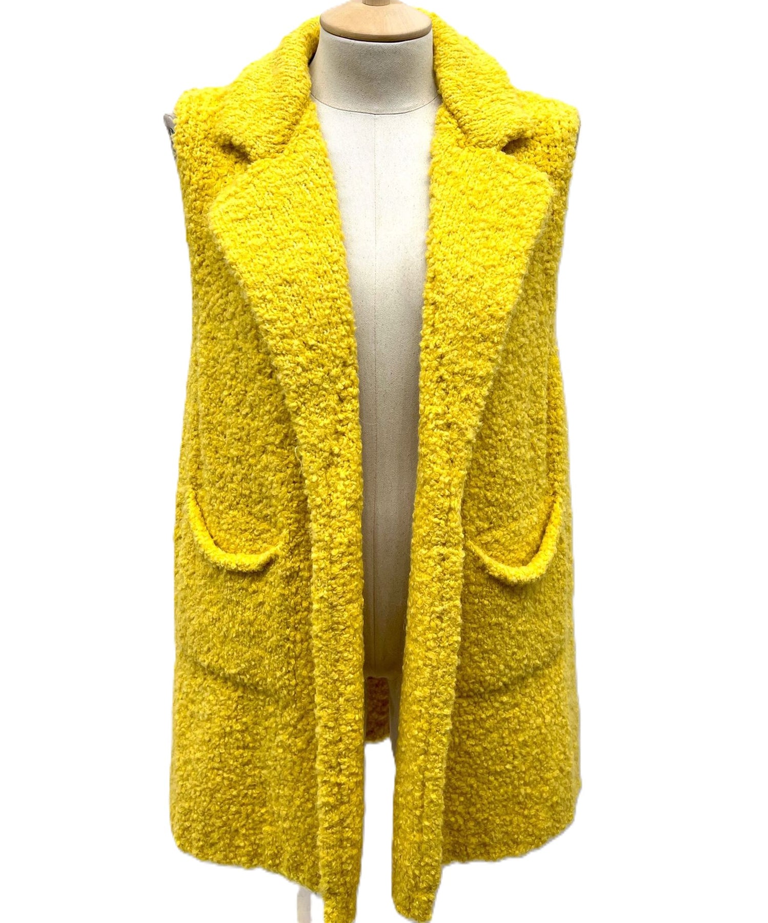 Ladies Italian Soft Warm Wool Blend Open Front Boucle Gilet Collared Sleeveless Knit