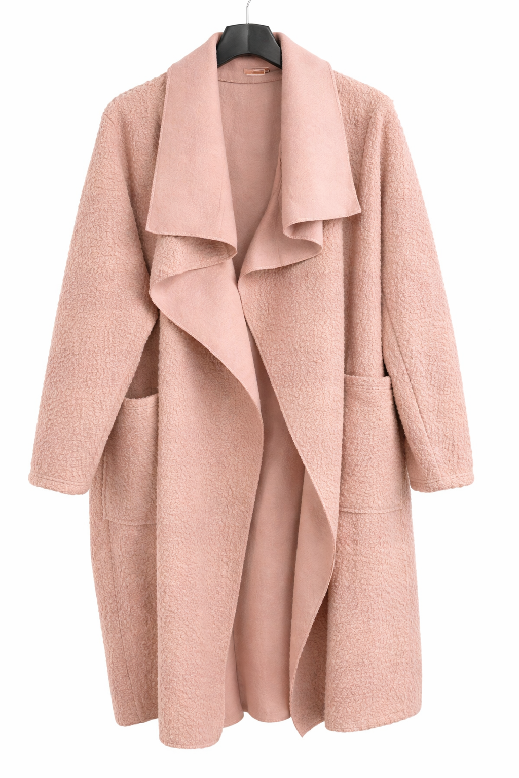 Ladies Italian Lagenlook Boucle Warm Winter Waterfall Collar Coat
